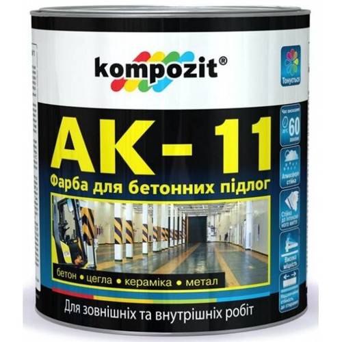 Быстросохнущая акриловая краска АК-11 - рекомендуется для окраски бетонных полов, как промышленных, так и хозяйственного назначения. Так же, акриловая быстросохнущая краска АК-11 предназначена для нанесения на бетонные, цементные, цементно-волокнистые и на другие минеральные поверхности как внутри, так и снаружи помещений. Кроме этого, краска АК-11 может использоваться для нанесения на дерево и на древесноволокнистые материалы.