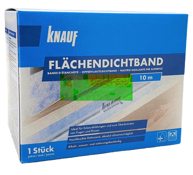 КНАУФ-Флэхендихтбанд представляет собой тонкую, высокопрочную, эластичную полиэфирную сетчатую ленту, с нанесённой по продольной оси полосой водонепроницаемого, стойкого к старению эластомера.