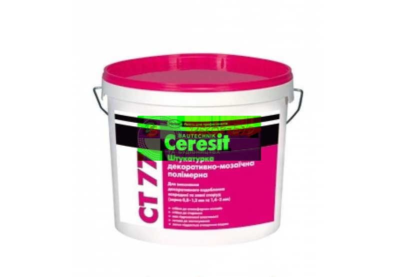 Штукатурка Ceresit СТ 77 "Мозаичная" (зерно 08-1,2 мм) предназначена для декоративной структурной отделки поверхностей внутри и снаружи зданий, по бетонным, подготовленным кирпичным, оштукатуренным основаниям и в системах теплоизоляции фасадов